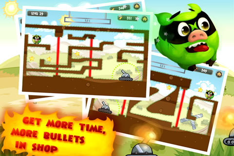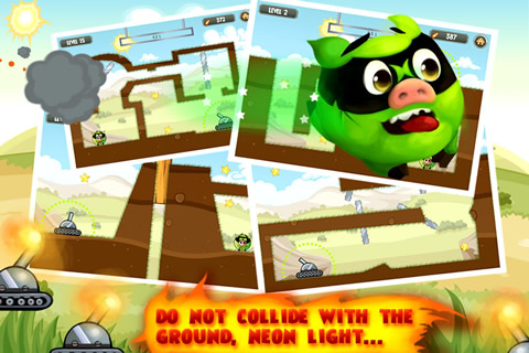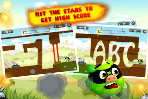 Fire Piggy -- Touch inside the green circle to spawn a new bullet to fire the poor piggy. Please be very careful in some advanced levels. Do not collide with the ground, wall, board, gear and neon light. Good luck!